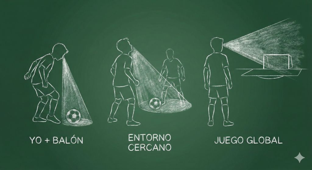 Son niños que empiezan a levantar la cabeza. Ya no solo ven el balón; empiezan a ver «obstáculos» (rivales) y «ayudas» (compañeros).