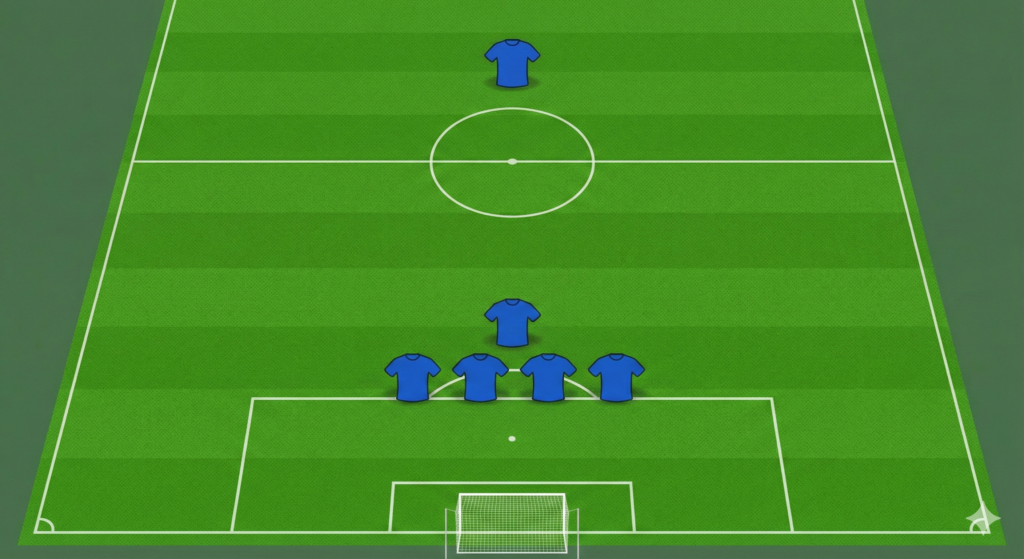 - Espacios Reducidos: El sistema 1-4-1-1 fútbol 7 bloquea casi todo el ancho del campo, ahogando al rival.