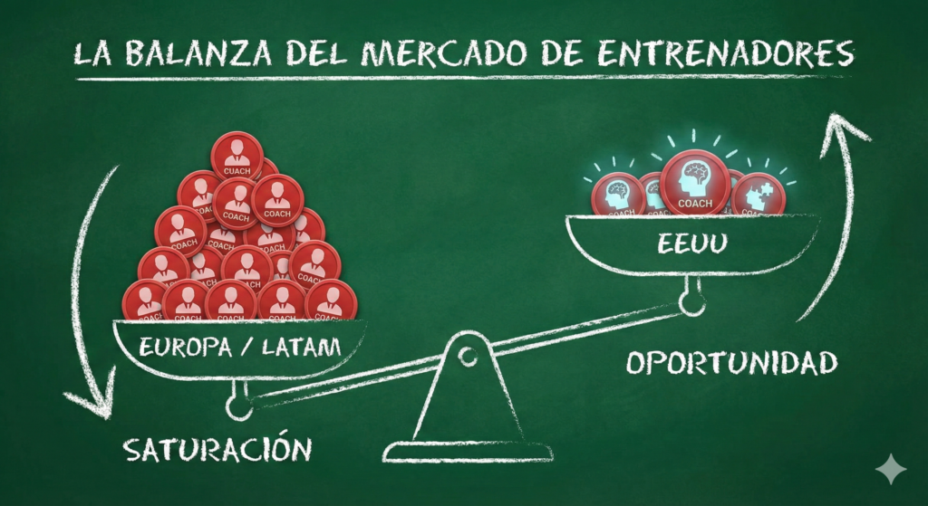 En este artículo analizamos por qué el mercado estadounidense es la próxima gran frontera para el entrenador hispanohablante y por qué tú deberías estar preparándote.